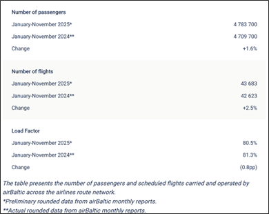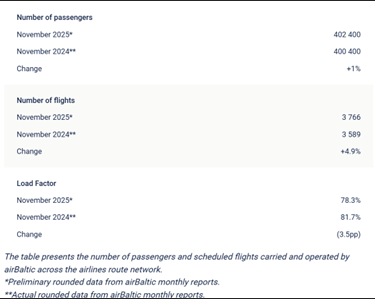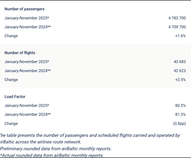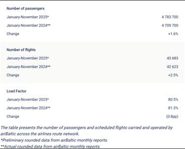 15 December 2025 - airBaltic Reports Traffic and Operational Results for November of 2025