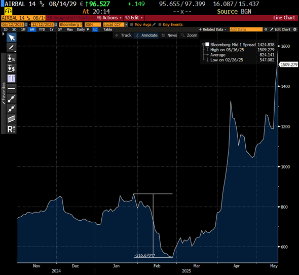 Their outstanding bond 14.5% 08/14/29 widened 655 bps even prior to the news and the AGM meeting on the 7th of April. The reaction from the AGM to nearest wide-most point was 389 bps widening. The bond remains wider to date than the levels after the AGM and firing of former CEO.
