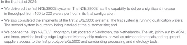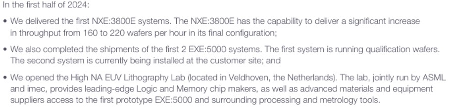 The first High-NA machines have already been delivered to Intel, and management has confirmed that another customer will be delivered this quarter. However, this technology has not yet reached industrial production due to technical challenges, particularly limited productivity.