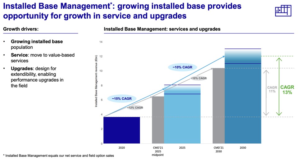 Finally, ASML’s services are expected to continue growing with the increase in its installed base of machines. The more existing machines are upgraded, the more it creates demand for upgrades from clients who prefer to optimize their current equipment rather than buying the latest machine, often for cost reasons.