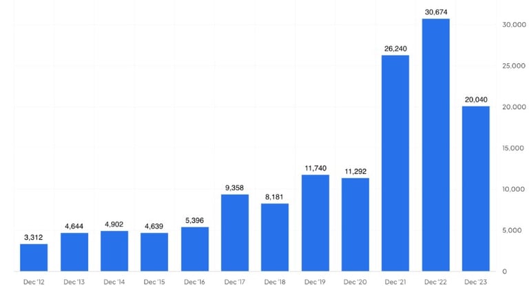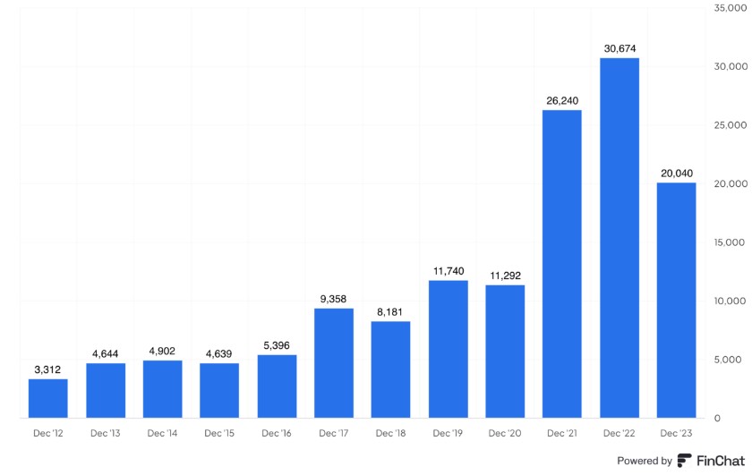 On the positive side, with 22 billion of profits and a valuation of 30, the market capitalization could be 660 billion for almost a 3x, if not more.