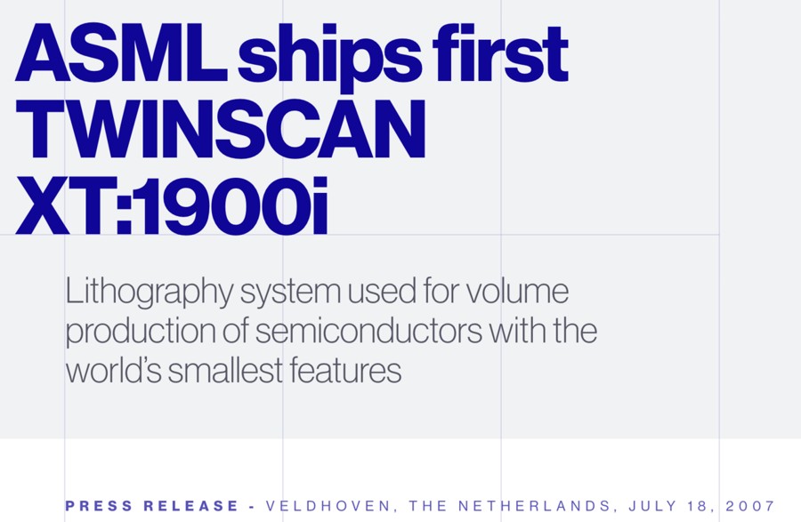 The productivity gain is enormous. With the launch of its first model, the TWINSCAN AT:750T, ASML achieved immediate commercial success.