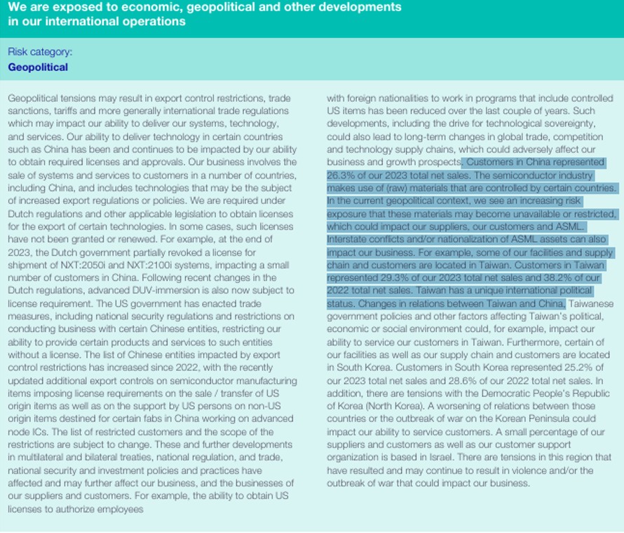 The first aspect concerns a potential invasion of Taiwan by China. If such a scenario were to materialize, it would have a major impact on the semiconductor supply chain, but it is difficult to assess the precise consequences for ASML.