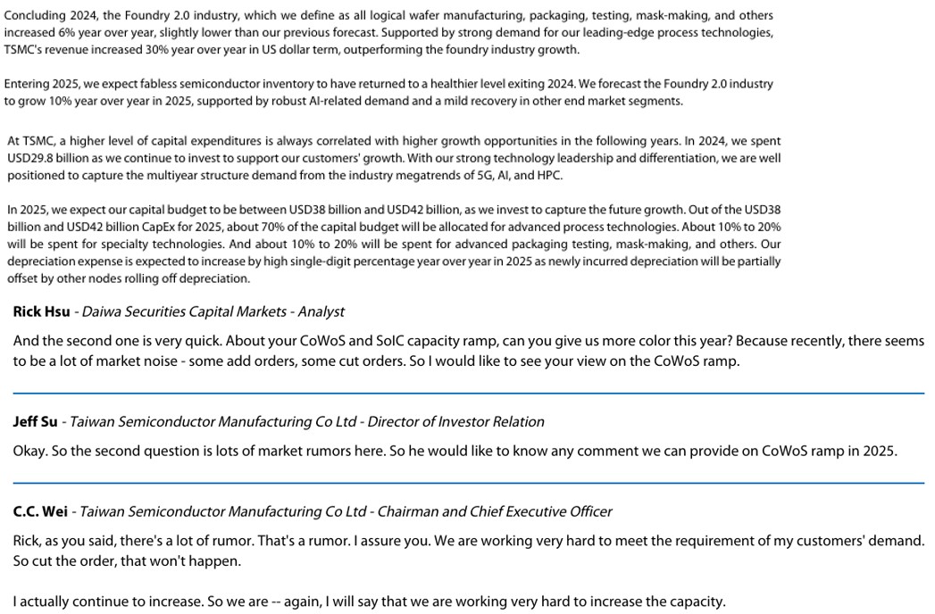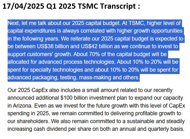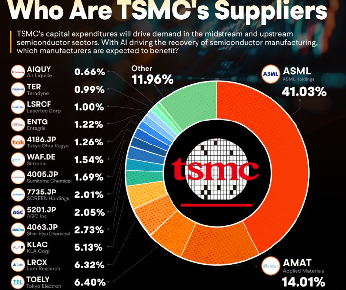 ASML Equipments account for most of TSMC’s capital expenditure.