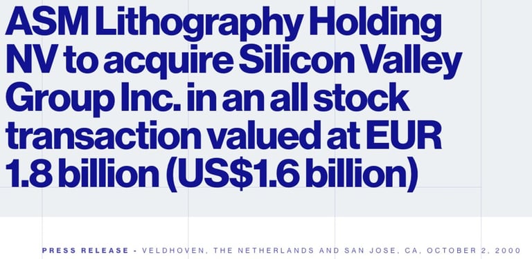 ASML was founded in 1984 as a joint venture between two Dutch companies: Philips and ASM International (a publicly traded company).