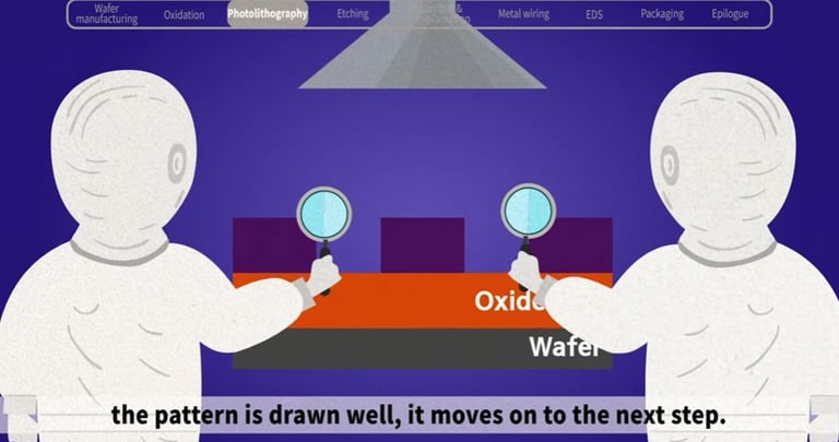 Just as you draw blueprints to build a building, you draw a circuit design onto a wafer, which is called the photolithography process.