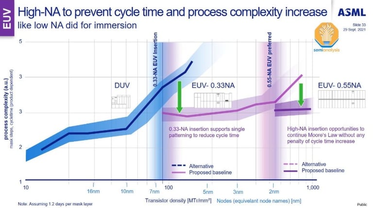 So, even if ASML managed to produce an ultra-high-performance machine that reduced the minimum resolution, it would never be profitable for foundries if it was too slow.