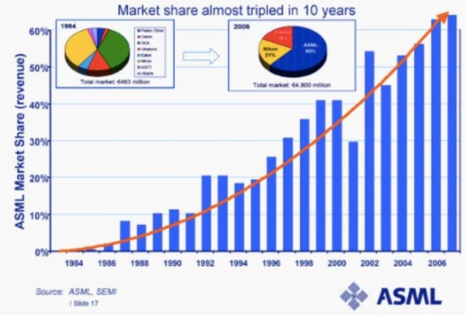 The success of this product allowed ASML to quickly gain market share in the photolithography equipment sector.