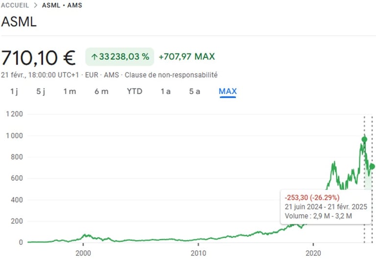 ASML, the Dutch company, is probably one of the best European stock right now. However, after a stellar performance since its IPO in 1995, the stock has lost more than 30% from its highs in July 2024.