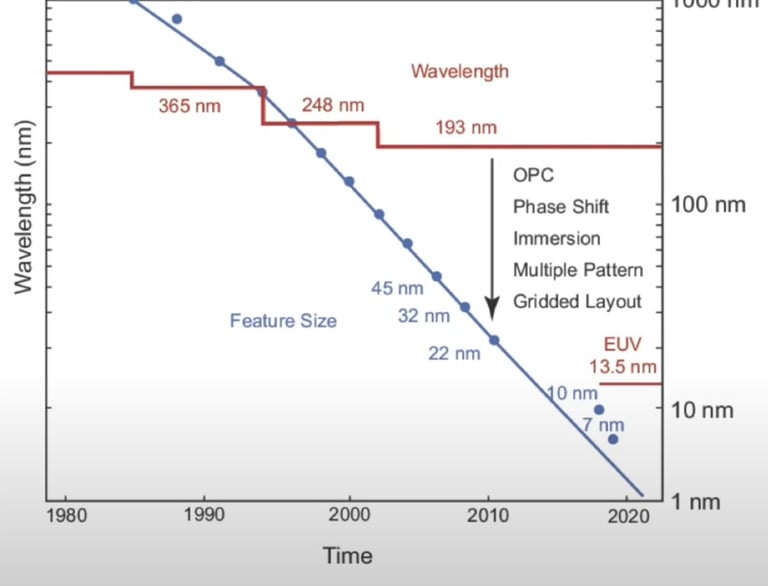 At the turn of the century, the best available lithography used an argon fluoride (ArF) laser light source with a wavelength of 193 nm.