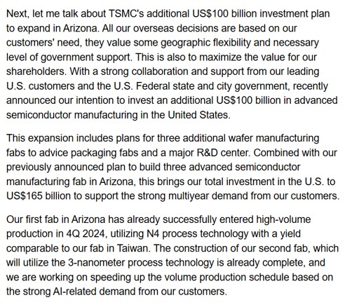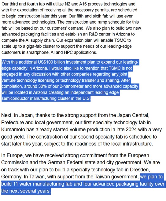 More CAPEX from TSMC to build new plants and equip them seems to be on the cards which means more money spent on ASML’s equipment.