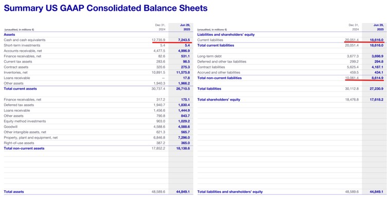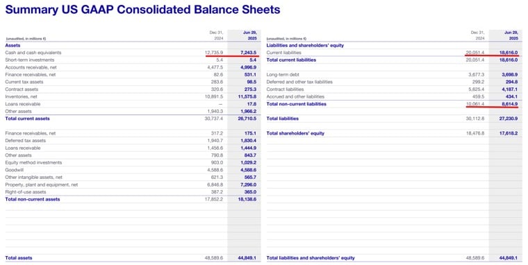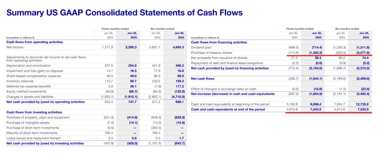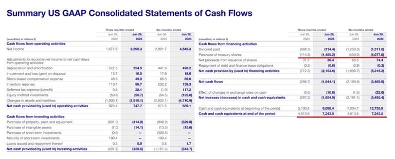 So, to summarize they are deploying some of the cash that they had accumulated in 2024 to buyback shares and diminish their liabilities which is ok with me. 4 Billion for buybacks and around 4 Billions to decrease liabilities. That’s why they have negative cash flows, what they earned they must have put in the liabilities and with the cash on the side they starting doing buybacks, or inverted.