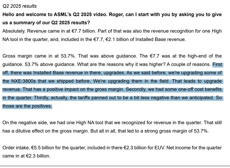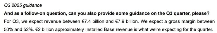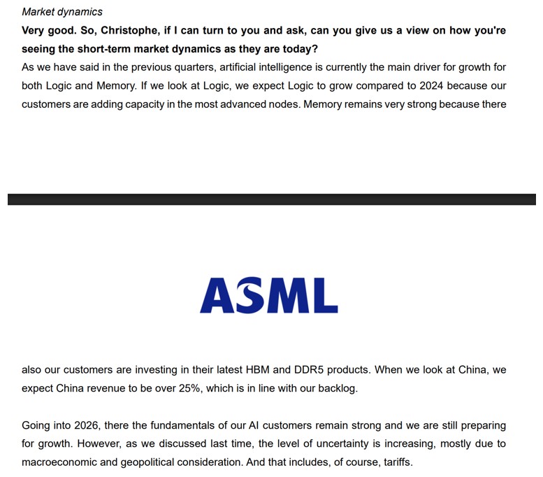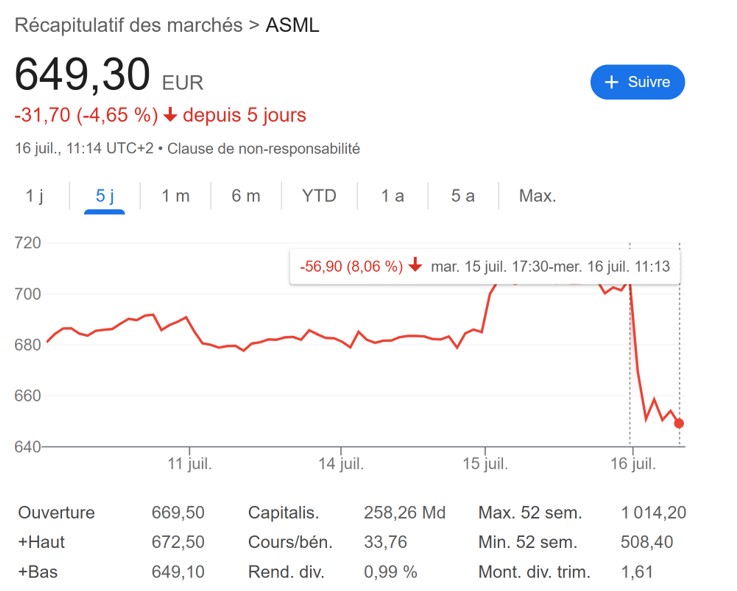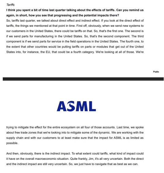 Ok, I see the issue. So basically, the market is reacting the exact same way as in Q1 and is worried about the impact of tariffs on ASML’s future results. So I’m expecting a a similar analysis as last time but let’s verify.