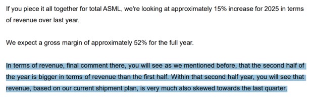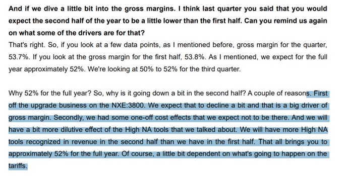 But margin will be lower because of the sale of High NA tools but that is also why they have the higher revenue and so more profit though margin contract a bit. To be expected for the second half of the year.