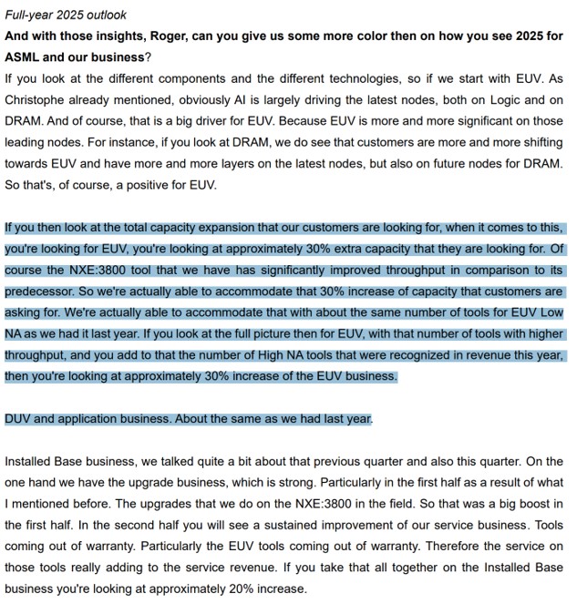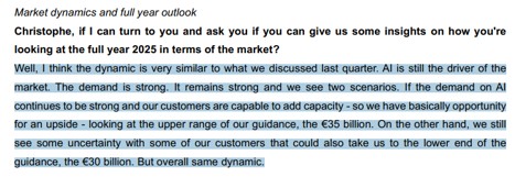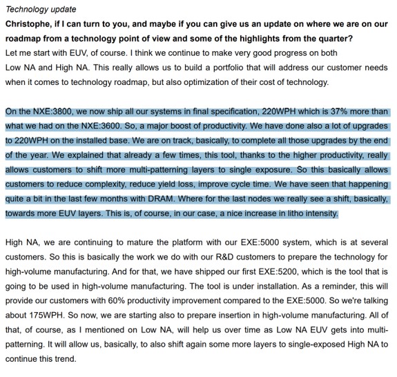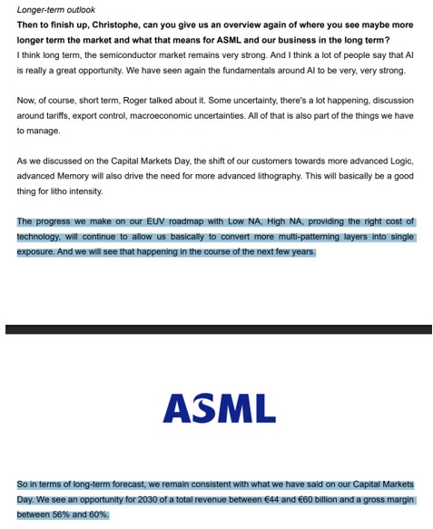 They reaffirmed their long-term guidance and as we said earlier the most important thing for the long term earnings of the company is the dynamic between single exposure layers and multi-patterning layers. If single exposure layer increase compared to multi-patterning that is great for ASML future earnings with EUV usage that will have to increase. Have to follow the advanced packaging part that could also be another way to increase the number of transistors, to follow with the analysis of BESI.