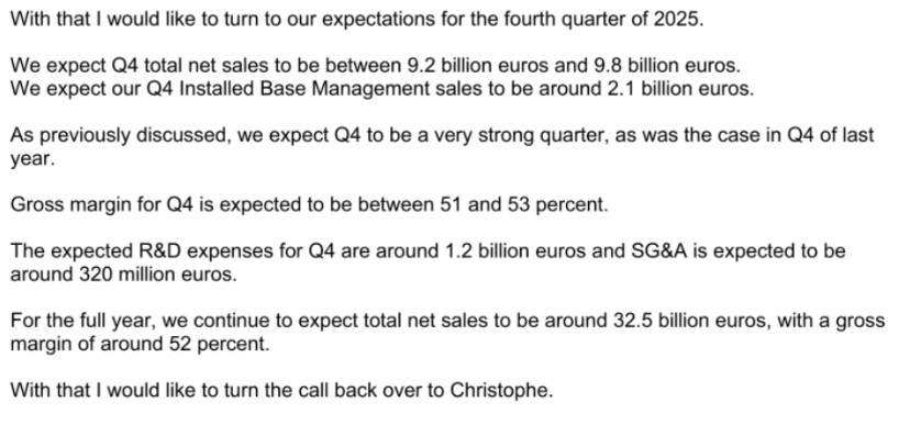 Guidance confirms our hypothesis for the year that we had for Q1 and Q2. Which is good. (And as they had said in Q2 revenue will be skewed towards last quarter than this quarter). Furthermore TSMC continue its capital expenditure and great results which is good for ASML future numbers :