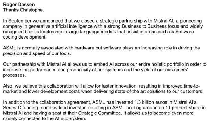 “Looking at 2026, we see that our AI customers’ fundamentals remain strong. At the same time, we continue to see increasing uncertainty driven by macro-economic and geopolitical developments,” Fouquet said in an earnings release. “Therefore, while we still prepare for growth in 2026, we cannot confirm it at this stage.”